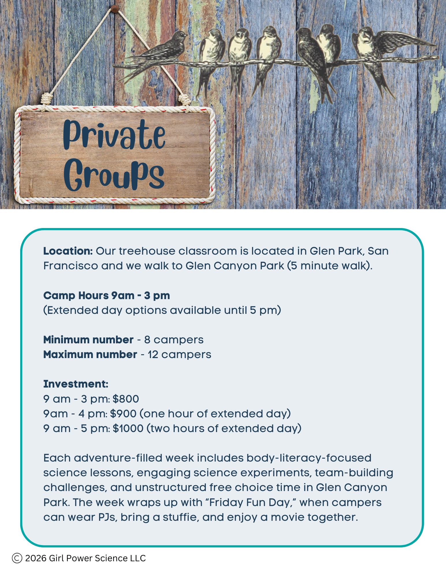 Build her confidence and strengthen her girl power with fun science experiments, team building challenges, hikes, and games.