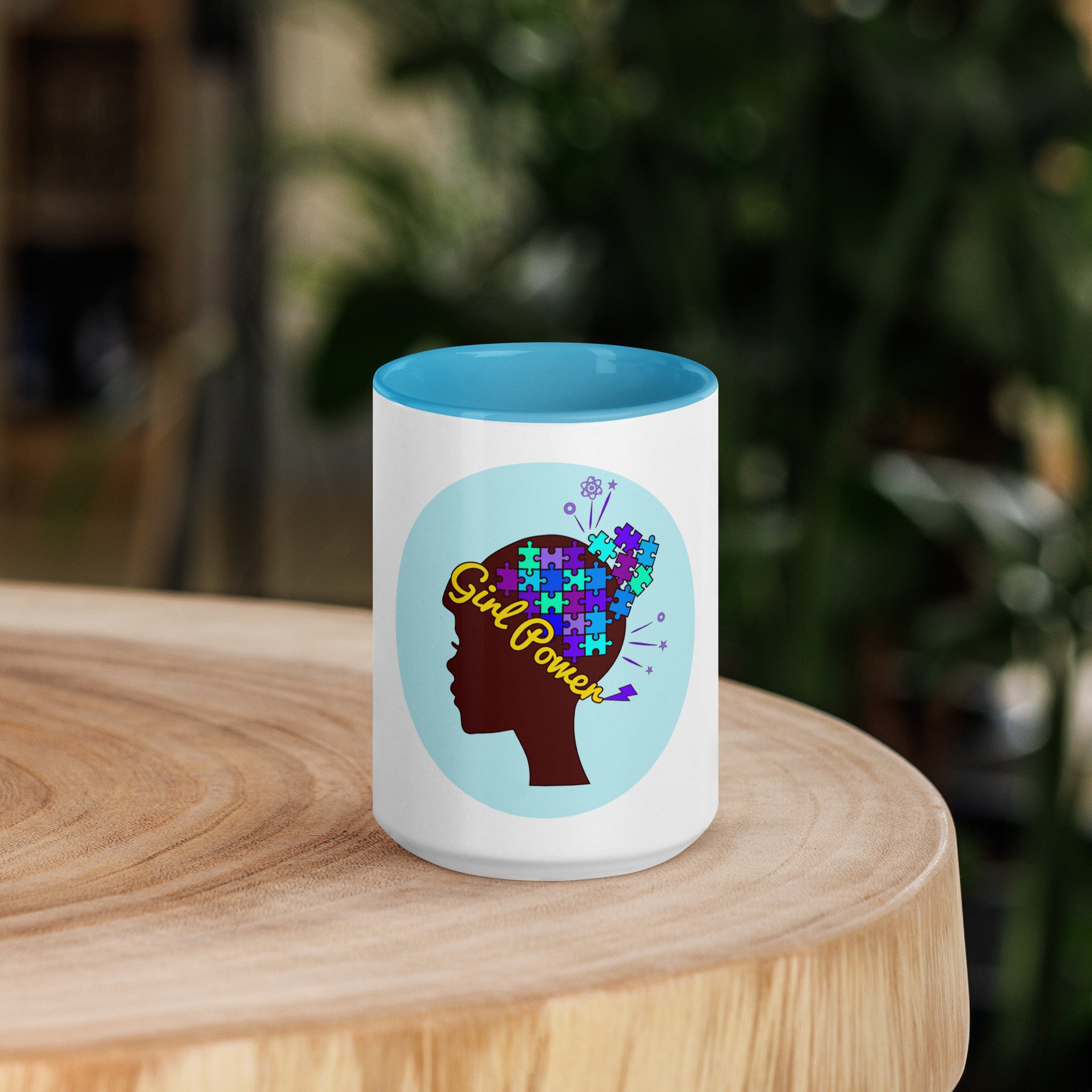 Add a splash of color to your morning coffee or tea ritual! These ceramic mugs not only have our colorful girl power design on them, but also a bright blue rim, handle, and inside, so the mug is bound to spice up your mug rack.
